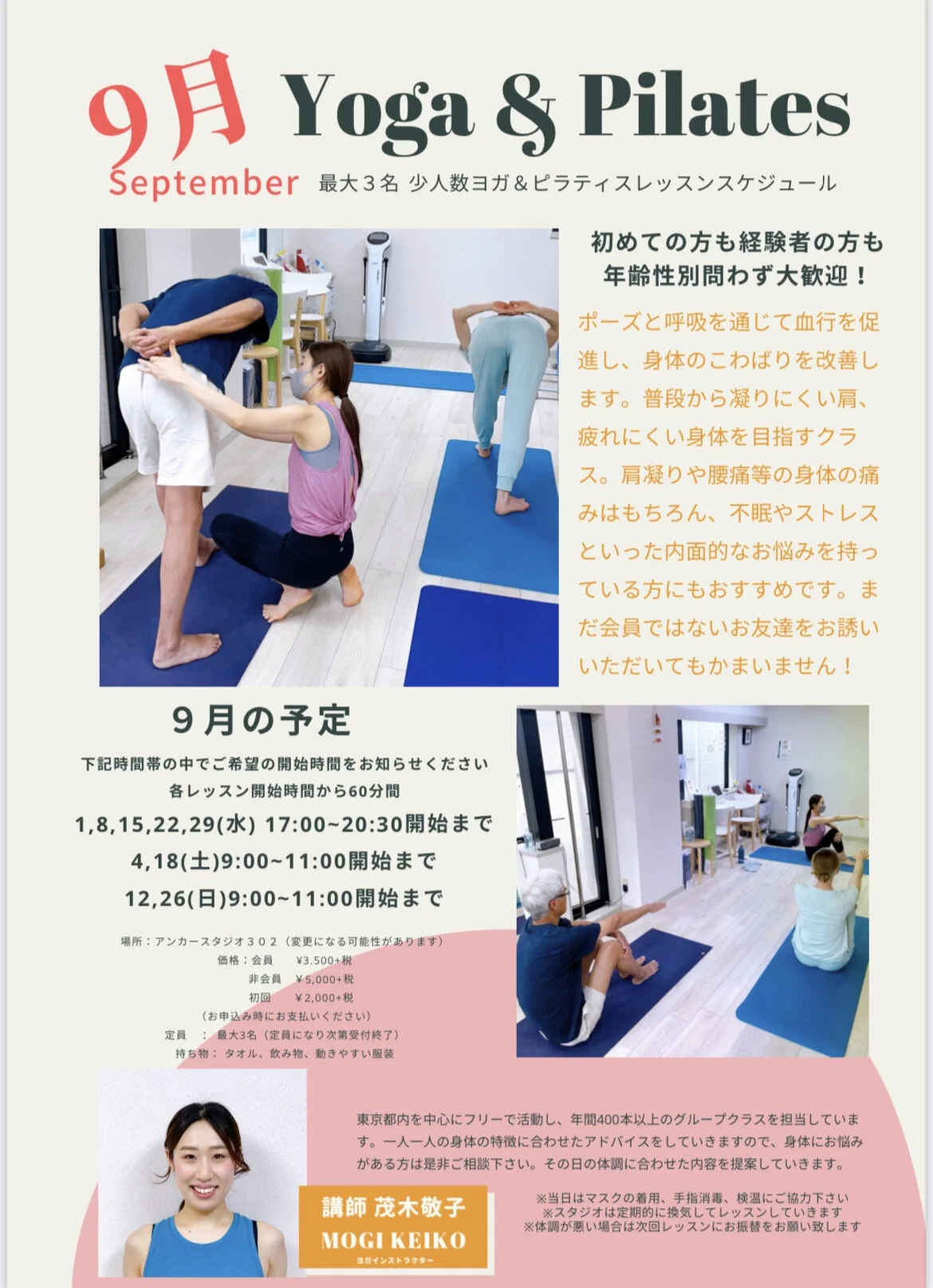 KEIKO先生によるヨガ&ピラティスの少人数クラスを